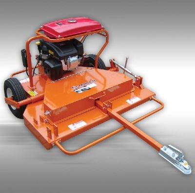 Mit unserem ATV-Mulchmähwerk sind Sie sehr flexibel. Dank des verbauten Benzinmotors mit einer satten Leistung von 15 PS sind Sie unabhängig mit diesem Mähwerk, egal ob Sie den Mulcher mit einen Quad / ATV, einem Rasentraktor, Schmalspurtraktor oder gar PKW ziehen. Das Mähwerk wird über eine normale Kugelkopfkupplung mit dem Zugfahrzeug verbunden. Die Schnitthöhe kann sehr einfach über eine Kurbel eingestellt werden. Der Viertakt-Benzinmotor treibt das Mähwerk über 2 Keilriemen an. Im hinteren Bereich des Mulchers ist eine schwere Nachlaufwalze verbaut. Der Motor kann bequem über einen Elektrostarter angelassen werden; die 12 Volt-Batterie ist im Lieferumfang enthalten. Alternativ kann der Motor auch über einen Seilzugstarter angelassen werden. Die 28 verbauten Hammermesser zerkleinern das Schnittgut bis auf ein Minimum. Auch sehr hohes Gras, buschiges oder strohiges Schnittgut sind mit diesem Mähwerk kein Problem. Dank der großen, stabilen Luftreifen kann das Mähwerk bequem auch auf sehr unebenen Untergründen bewegt werden.